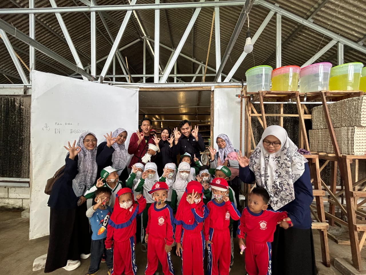 Sabtu pagi Mentari Agri Farm terasa lebih cerah dari biasanya. Tepat pukul 08.00, rombongan kecil namun penuh keceriaan dari KB TAAM Al-Huda dan TK Al-Hidayah Pengkol tiba di gerbang farm. Sebanyak 15 siswa bersama 4 guru tampak antusias sejak turun dari kendaraan. Mereka langsung disambut hangat oleh kakak-kakak mentor dari Mentari Agri Farm yang siap menemani petualangan edukatif hari itu.