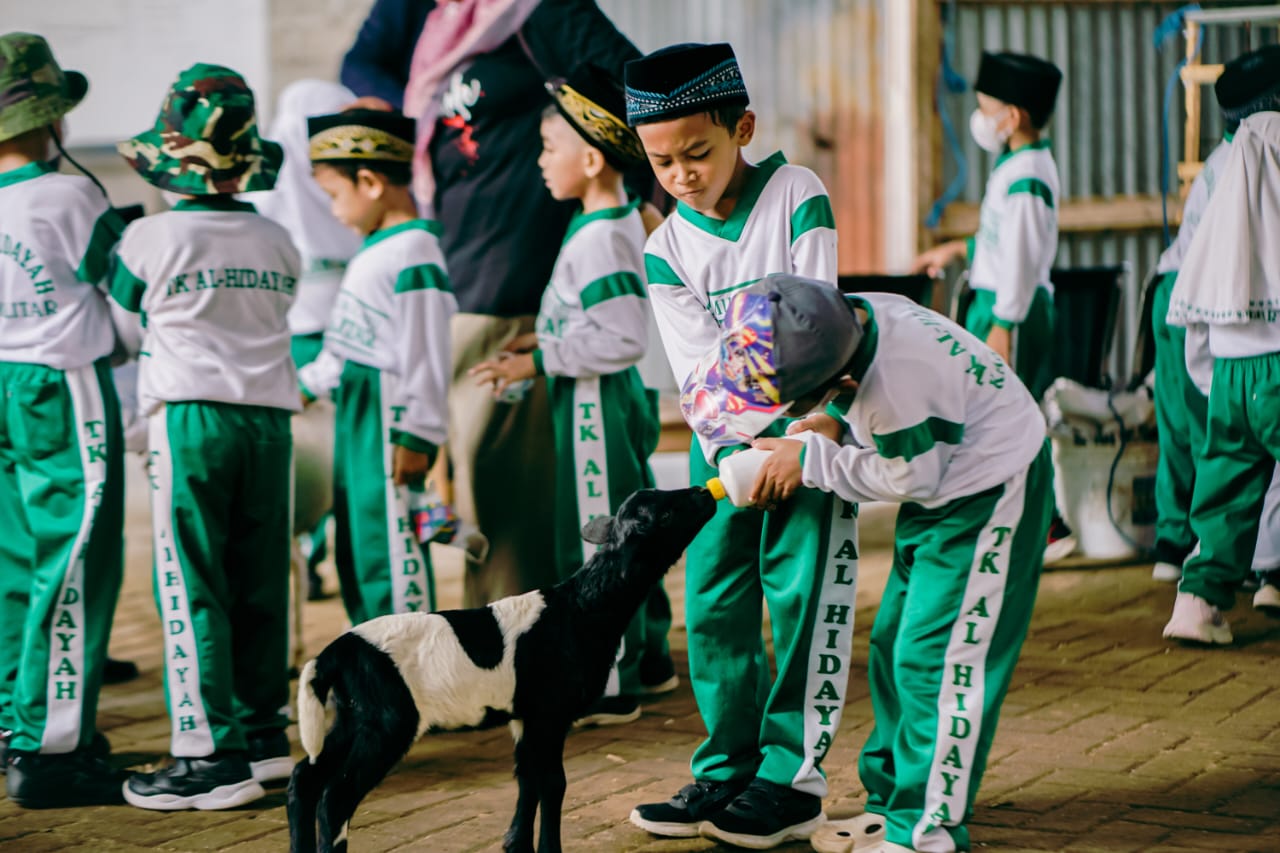 Setelah itu, para siswa berbaris rapi menuju kandang domba. Sepanjang kegiatan, mereka mengikuti berbagai aktivitas seru seperti memberi makan kelinci, domba, dan rusa, serta menata telur puyuh di egg tray. Anak-anak juga belajar merawat hewan dengan memberi susu anakan domba menggunakan botol, bahkan ada kesempatan menggendong anak domba, yang menjadi momen favorit peserta.