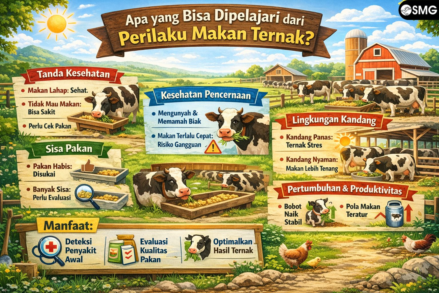 Perilaku makan ternak merupakan cerminan kondisi kesehatan, kualitas pakan, dan manajemen pemeliharaan. Dengan melakukan pengamatan sederhana setiap hari, peternak dapat: