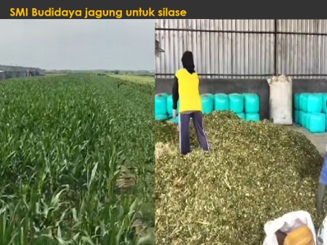 Budidaya jagung untuk silase ruminansia melibatkan pemanfaatan seluruh tanaman jagung (terutama tebon dan batang) sebagai pakan hijauan yang diawetkan melalui proses fermentasi anaerobik untuk menjaga ketersediaan pakan saat musim kemarau. Kualitas silase yang baik ditandai dengan warna hijau kecoklatan, bau asam segar, tekstur padat, tidak berjamur, dan pH yang rendah. Prosesnya meliputi pencacahan bahan, penambahan aditif jika perlu, pemadatan dalam wadah kedap udara (silo), dan fermentasi selama ±21 hari.