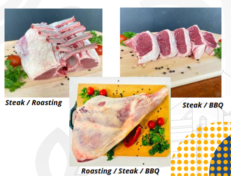 Sosis Domba (Merguez): Sosis bumbu rempah pedas khas Afrika Utara, cocok dimasak dan disajikan sebagai hidangan utama. Kaldu Domba (Lamb Broth): Kaldu kaya kolagen dari tulang domba muda, baik untuk kesehatan sendi, kulit, dan pencernaan